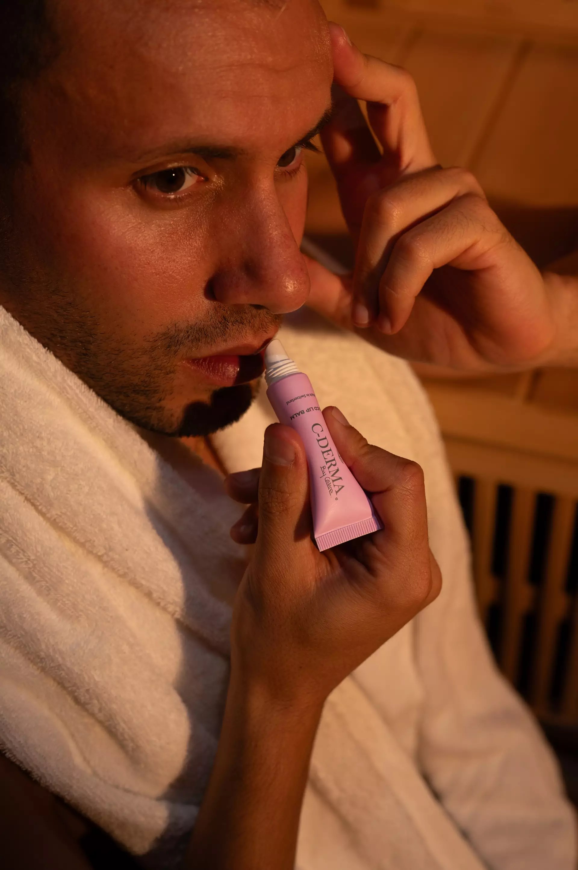 - Verwenden Sie bei trockenen und spröden Lippen unseren reparierenden CBD-Lippenstift erneut und Ihre Lippen sind morgens wieder ganz weich.